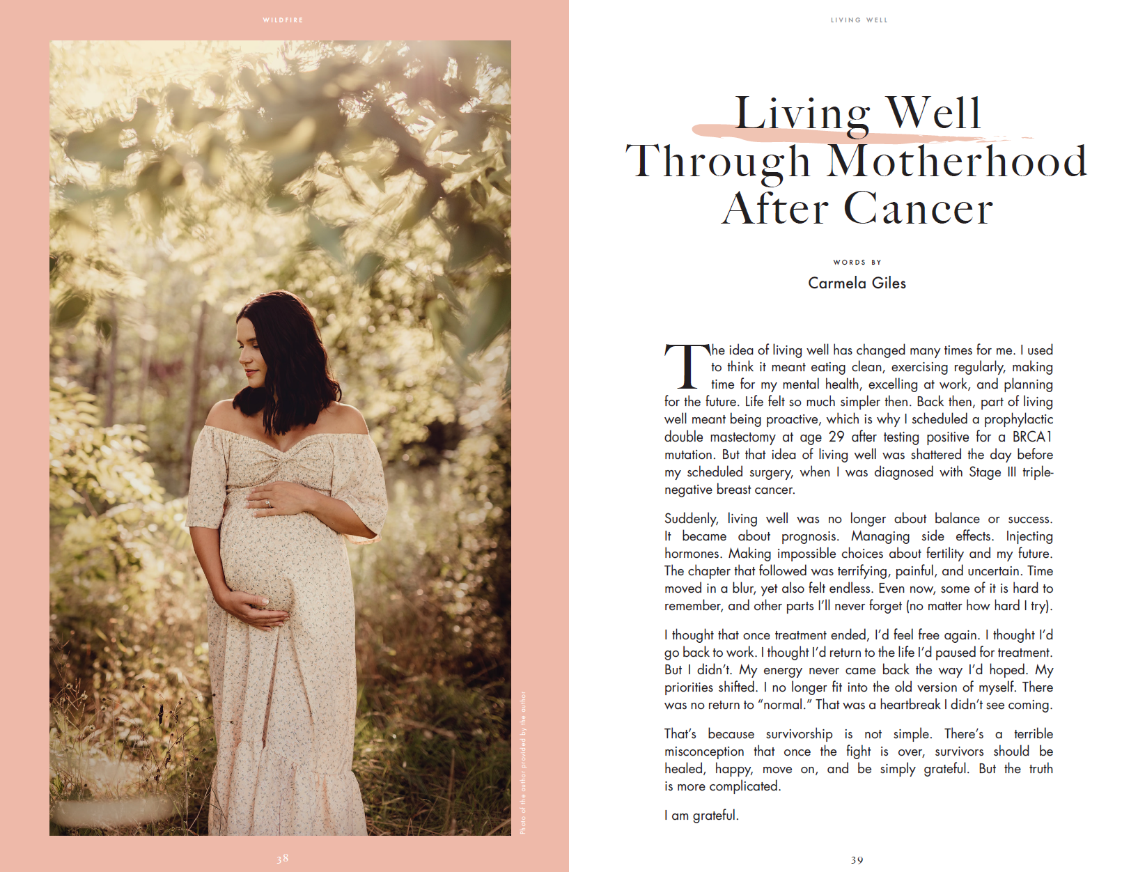 “There are many areas within the breast cancer experience that are so little understood or often misunderstood by the general public. The phase after initial diagnosis and treatment–“survivorship,” “thrivership,” figuring out how to live life after something like this and live it well–is definitely one of them. That’s why we were excited for Rethink Breast Cancer to team up with Wildfire once again as the guest editor for the debut of a new theme: Living Well.